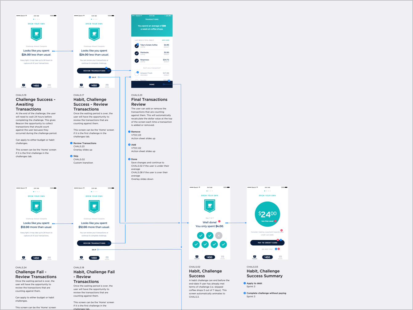 In my first experience working at an agency, I joined the Publicis Sapient Citibank team to focus on delivering a new app for their Citibank Ventures division. The goal of the app was to help customers reduce their debt by gamifying opportunities to save. So the idea was that we could present customers with an engaging app experience that rewarded them for looking at their spending and figuring out ways to set reasonable goals that they could meet. When the customer met their goals, they be rewarded with badges and notifications to keep them motivated and on track to pay down their credit cards.